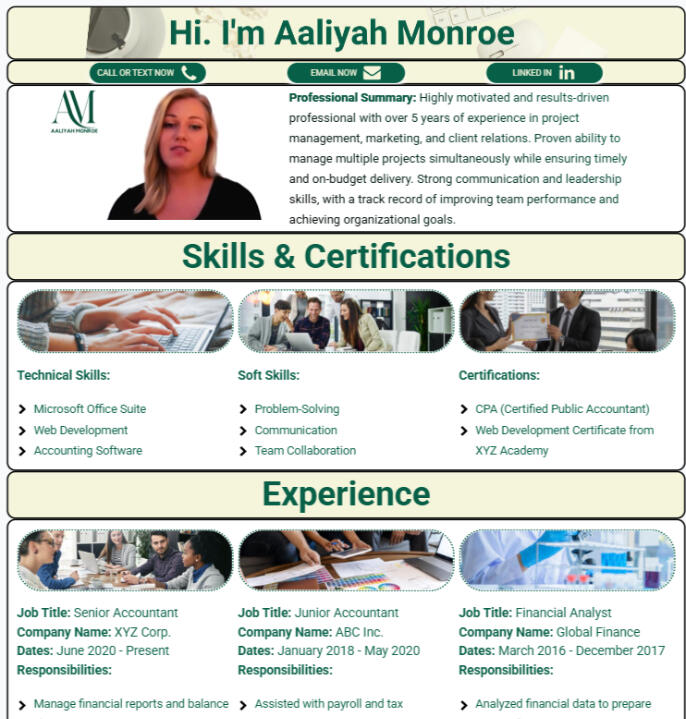 Aaliyah Monroe’s Professional Resume Website (Basic Package)